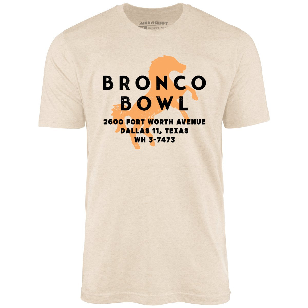 Bronco Bowl - Dallas, TX - Vintage Bowling Alley - Unisex T-Shirt