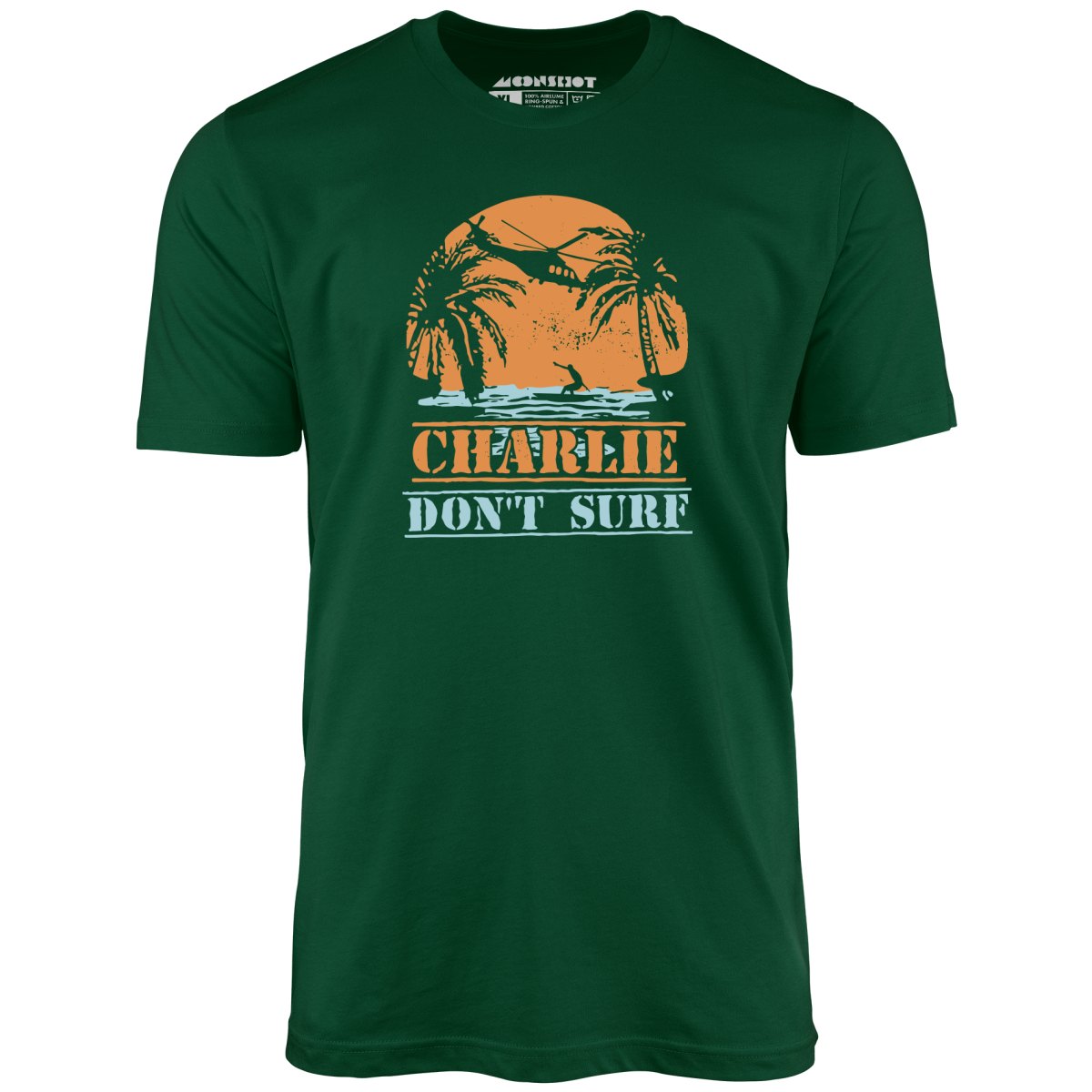 Charlie Don't Surf - Unisex T-Shirt is the ultimate addition to any wardrobe. This t-shirt is crafted from the finest grade of cotton, delivering a soft, lightweight, and comfortable feel. Its classic design features a crew neckline, short sleeves, and an effortlessly regular fit.
