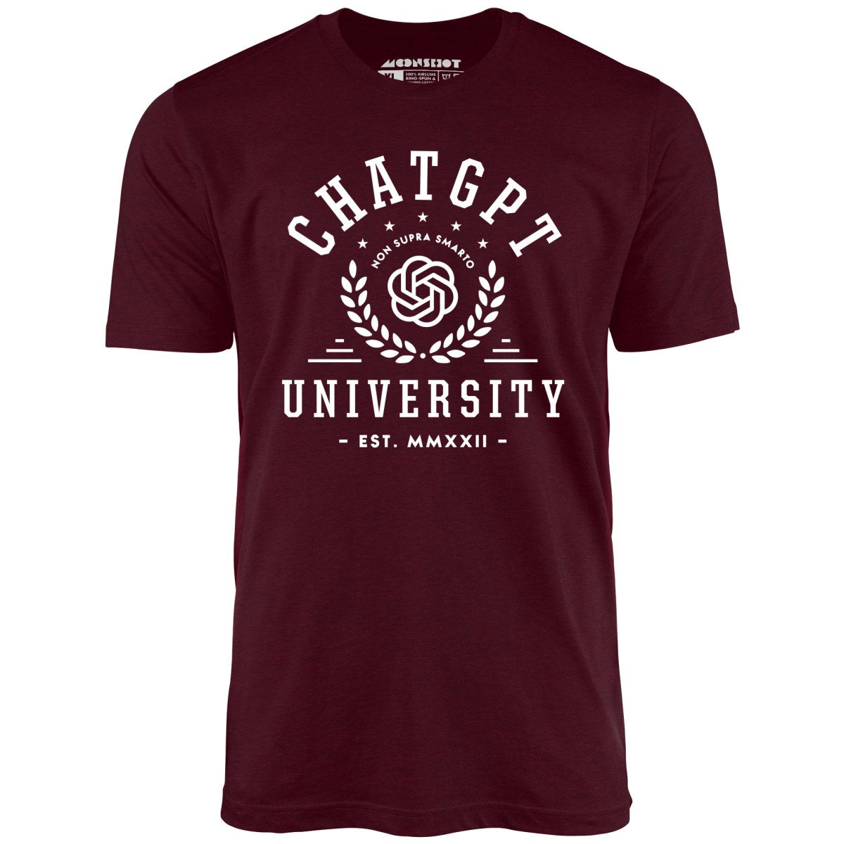 ChatGPT University - Unisex T-Shirt is the ultimate addition to any wardrobe. This t-shirt is crafted from the finest grade of cotton, delivering a soft, lightweight, and comfortable feel. Its classic design features a crew neckline, short sleeves, and an effortlessly regular fit.