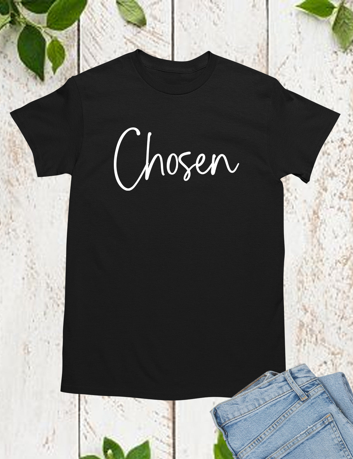 Chosen Christian T Shirts is the ultimate addition to any wardrobe. This t-shirt is crafted from the finest grade of cotton, delivering a soft, lightweight, and comfortable feel. Its classic design features a crew neckline, short sleeves, and an effortlessly regular fit.