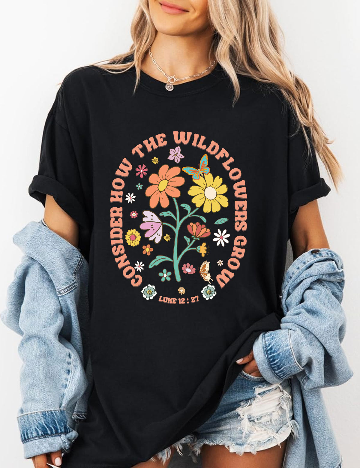 Are you in search of a fashionable and trendy t-shirt? Look no further! Explore our Christian Shirts for Women Consider Now Wildflower Grow. Crafted from 100% cotton, this shirt ensures a cool and comfortable experience throughout the day.