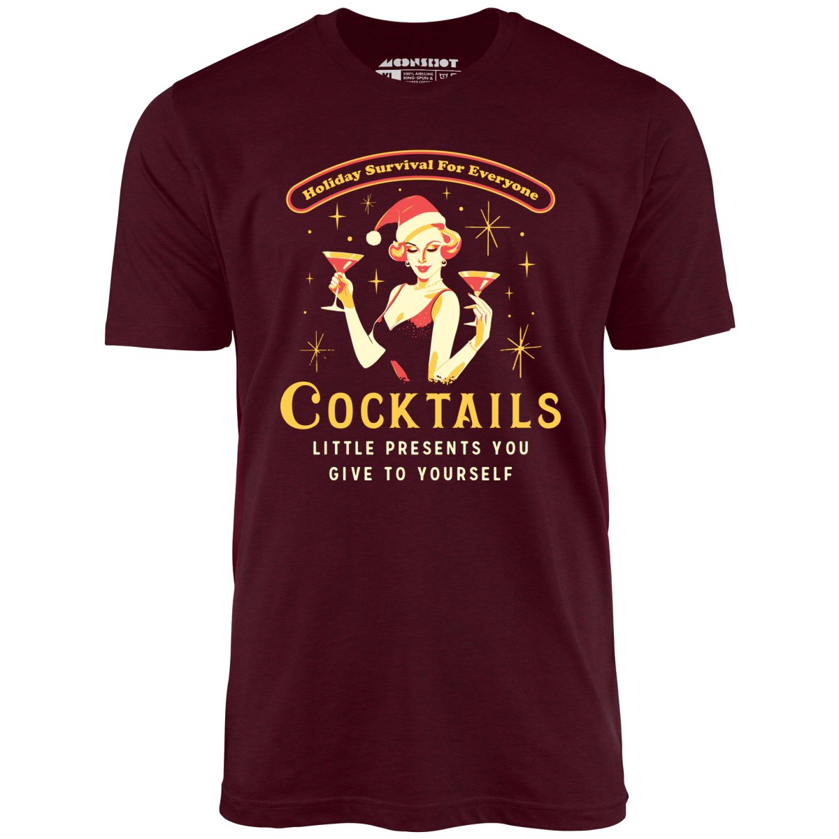 Christmas Cocktails - Unisex T-Shirt is the ultimate addition to any wardrobe. This t-shirt is crafted from the finest grade of cotton, delivering a soft, lightweight, and comfortable feel. Its classic design features a crew neckline, short sleeves, and an effortlessly regular fit.