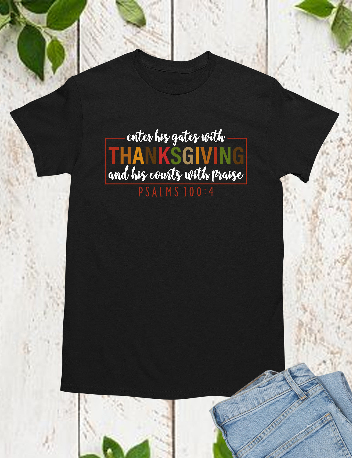 Are you in search of a fashionable and trendy t-shirt? Look no further! Explore our Enter his Gates With Thanksgiving Shirts. Crafted from 100% cotton, this shirt ensures a cool and comfortable experience throughout the day.