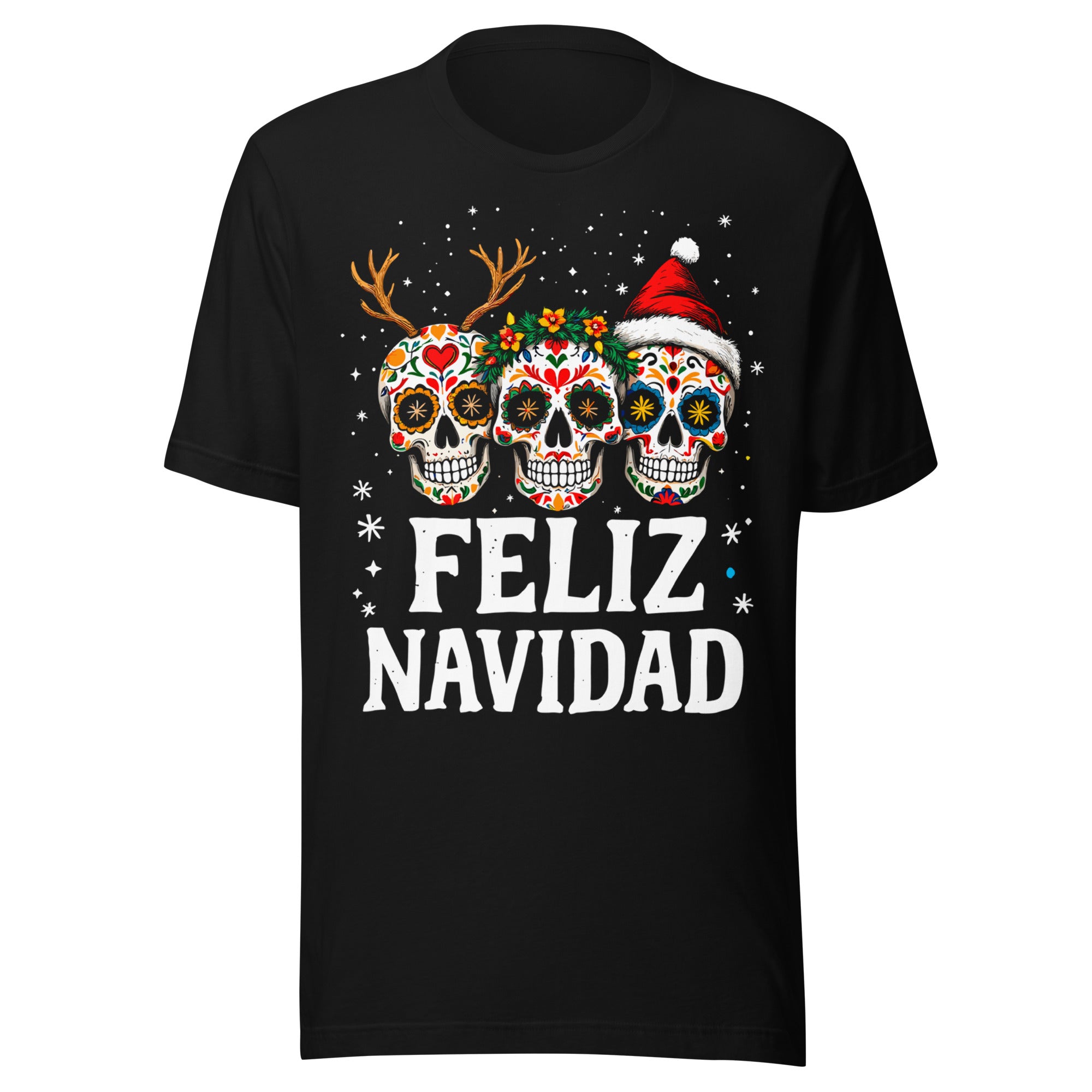 Feliz Navidad Sugar Skull Trio Christmas T-Shirt