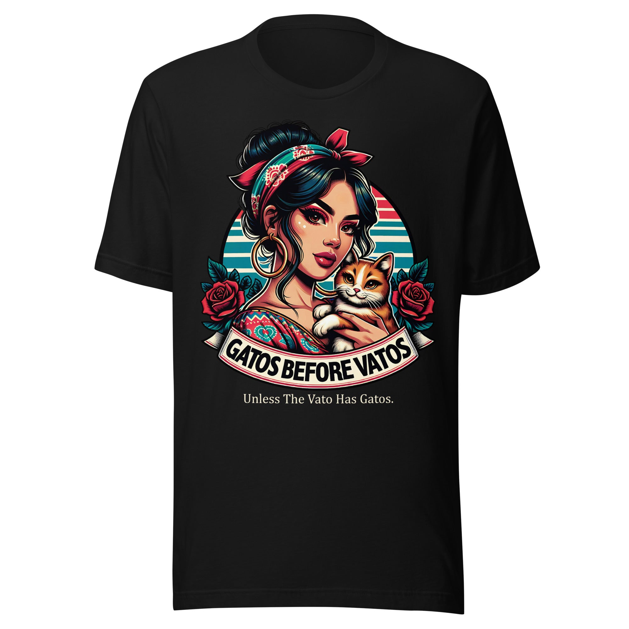 Gatos before Vatos. Unless the Vato Has Gato Chingona T-Shirt is the ultimate addition to any wardrobe. This t-shirt is crafted from the finest grade of cotton, delivering a soft, lightweight, and comfortable feel. Its classic design features a crew neckline, short sleeves, and an effortlessly regular fit.