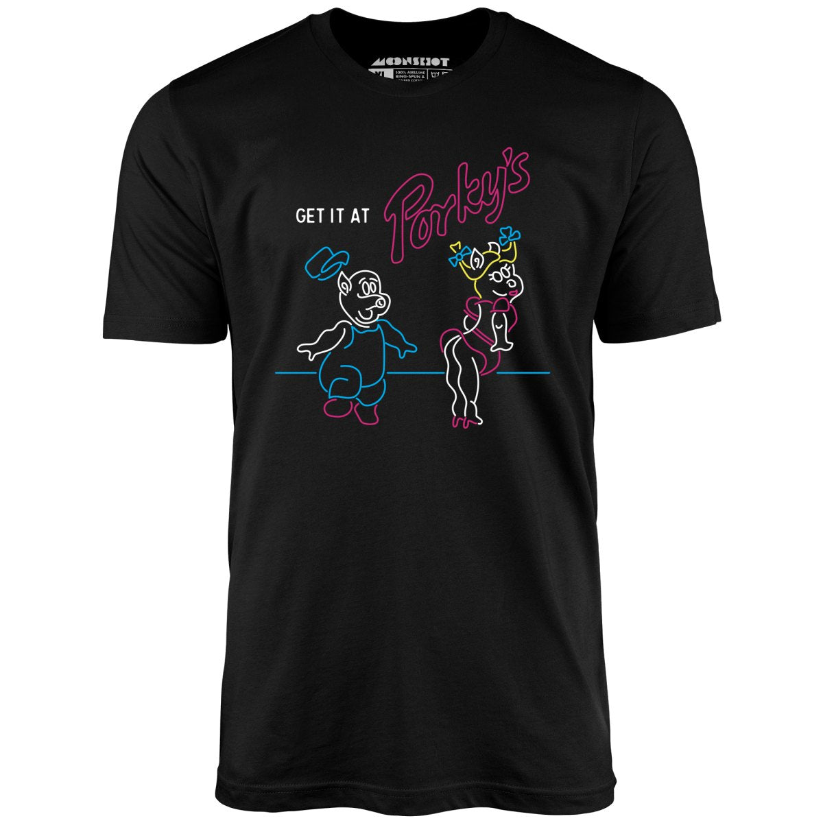 Get it At Porky's - Unisex T-Shirt is the ultimate addition to any wardrobe. This t-shirt is crafted from the finest grade of cotton, delivering a soft, lightweight, and comfortable feel. Its classic design features a crew neckline, short sleeves, and an effortlessly regular fit.