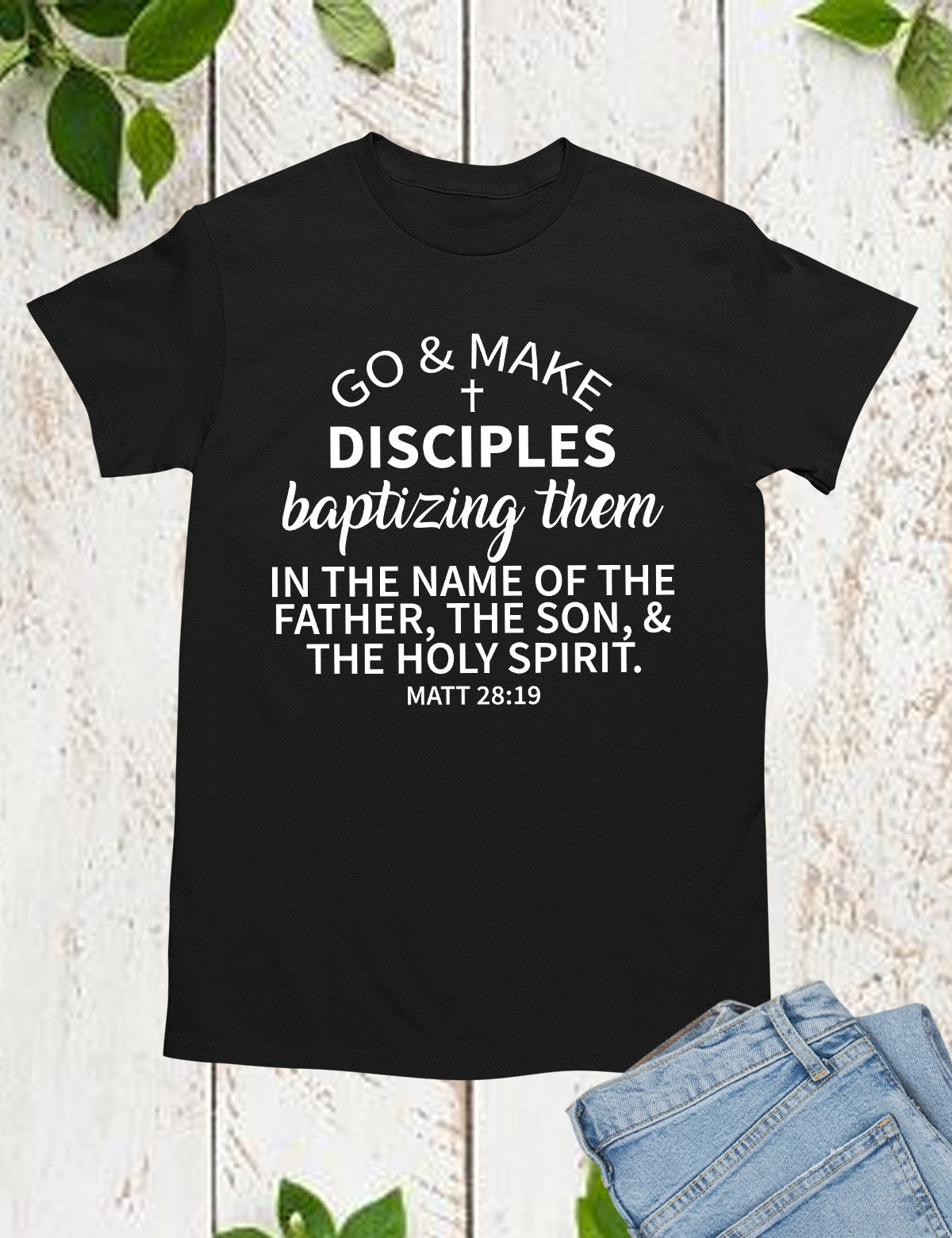 Are you in search of a fashionable and trendy t-shirt? Look no further! Explore our Go and Make Disciples Baptizing Them In The Name of father Shirt. Crafted from 100% cotton, this shirt ensures a cool and comfortable experience throughout the day.