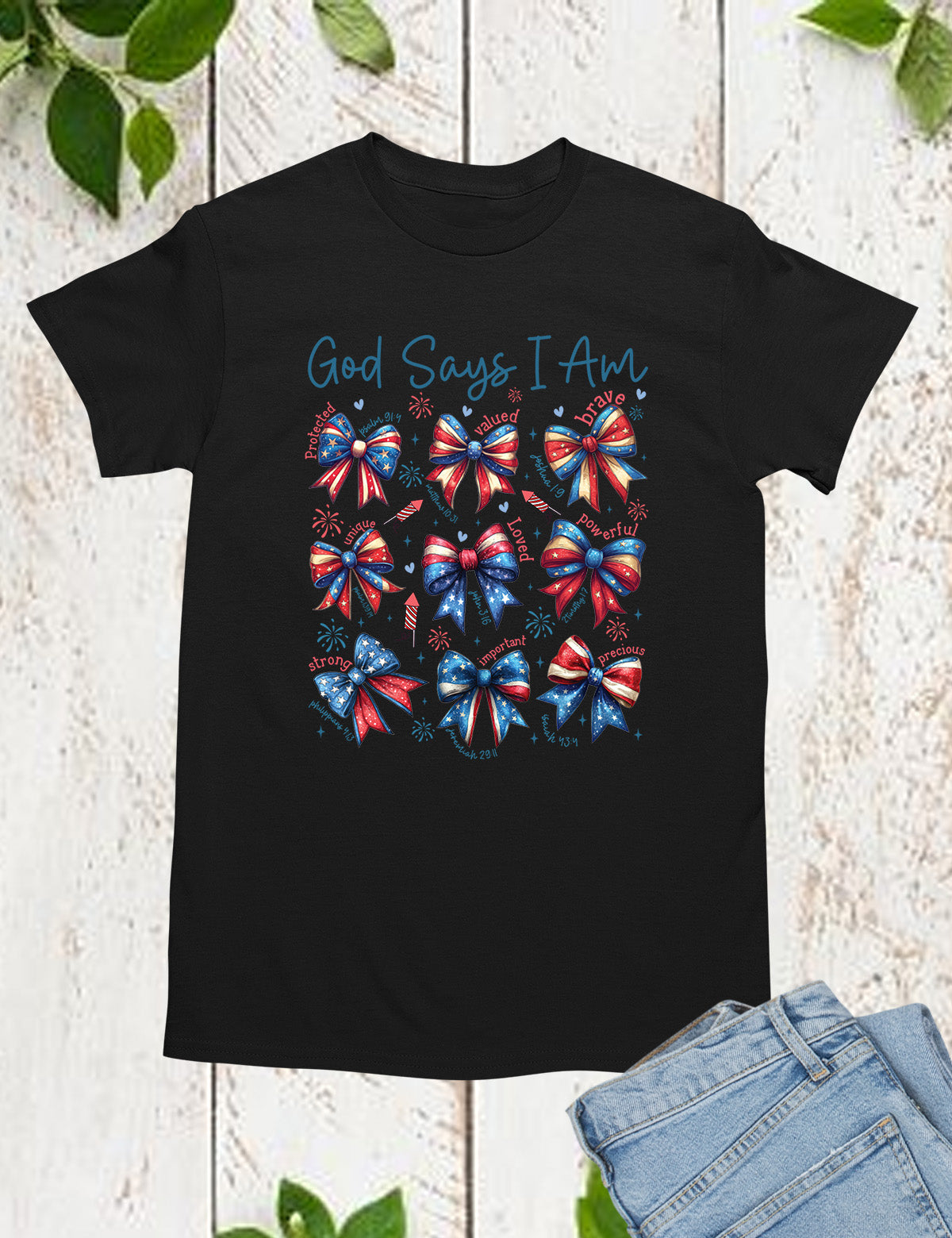 God Says I Am 4th of July Shirt is the ultimate addition to any wardrobe. This t-shirt is crafted from the finest grade of cotton, delivering a soft, lightweight, and comfortable feel. Its classic design features a crew neckline, short sleeves, and an effortlessly regular fit.