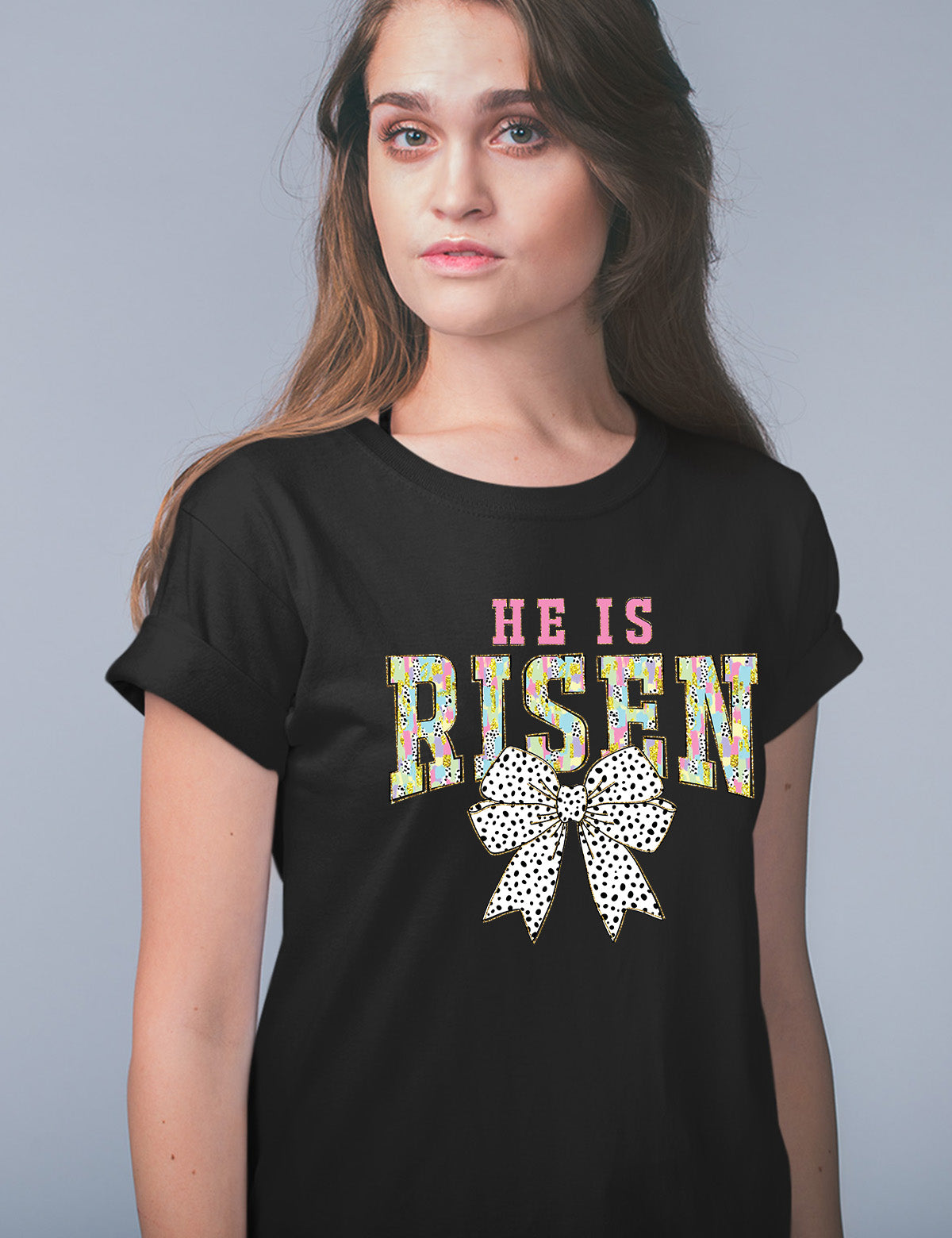 He is Risen Women T Shirt is the ultimate addition to any wardrobe. This t-shirt is crafted from the finest grade of cotton, delivering a soft, lightweight, and comfortable feel. Its classic design features a crew neckline, short sleeves, and an effortlessly regular fit.