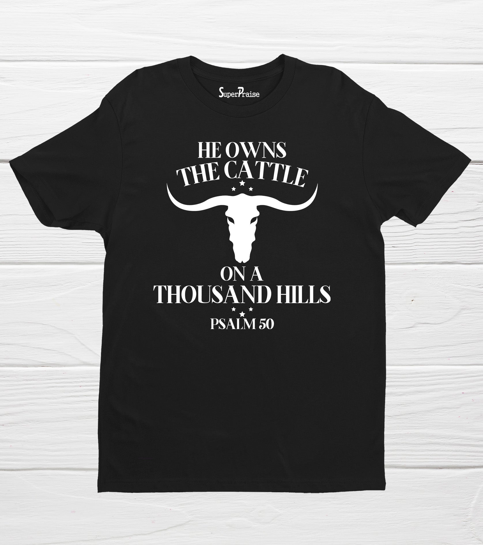He Owns The Cattle On A Thousand Hills Psalm 50 Bible Verse T Shirt