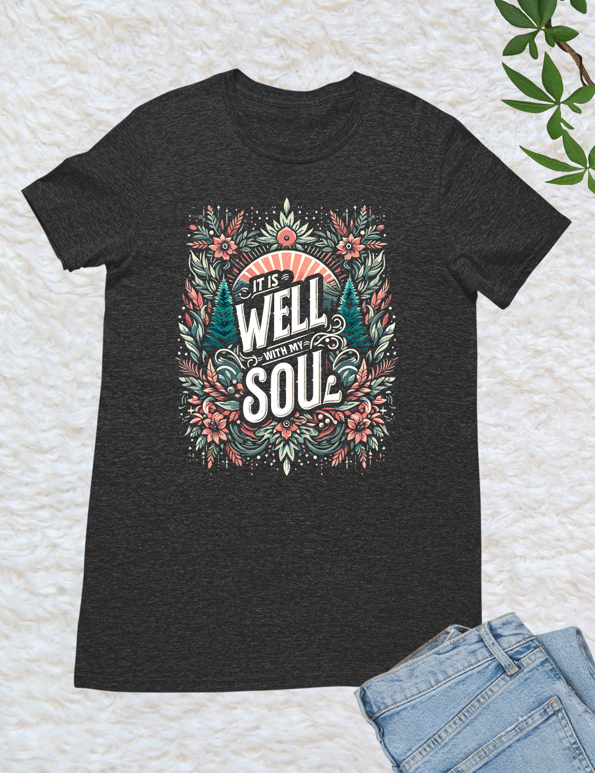 It is well with My Soul Christian Shirt is the ultimate addition to any wardrobe. This t-shirt is crafted from the finest grade of cotton, delivering a soft, lightweight, and comfortable feel. Its classic design features a crew neckline, short sleeves, and an effortlessly regular fit.