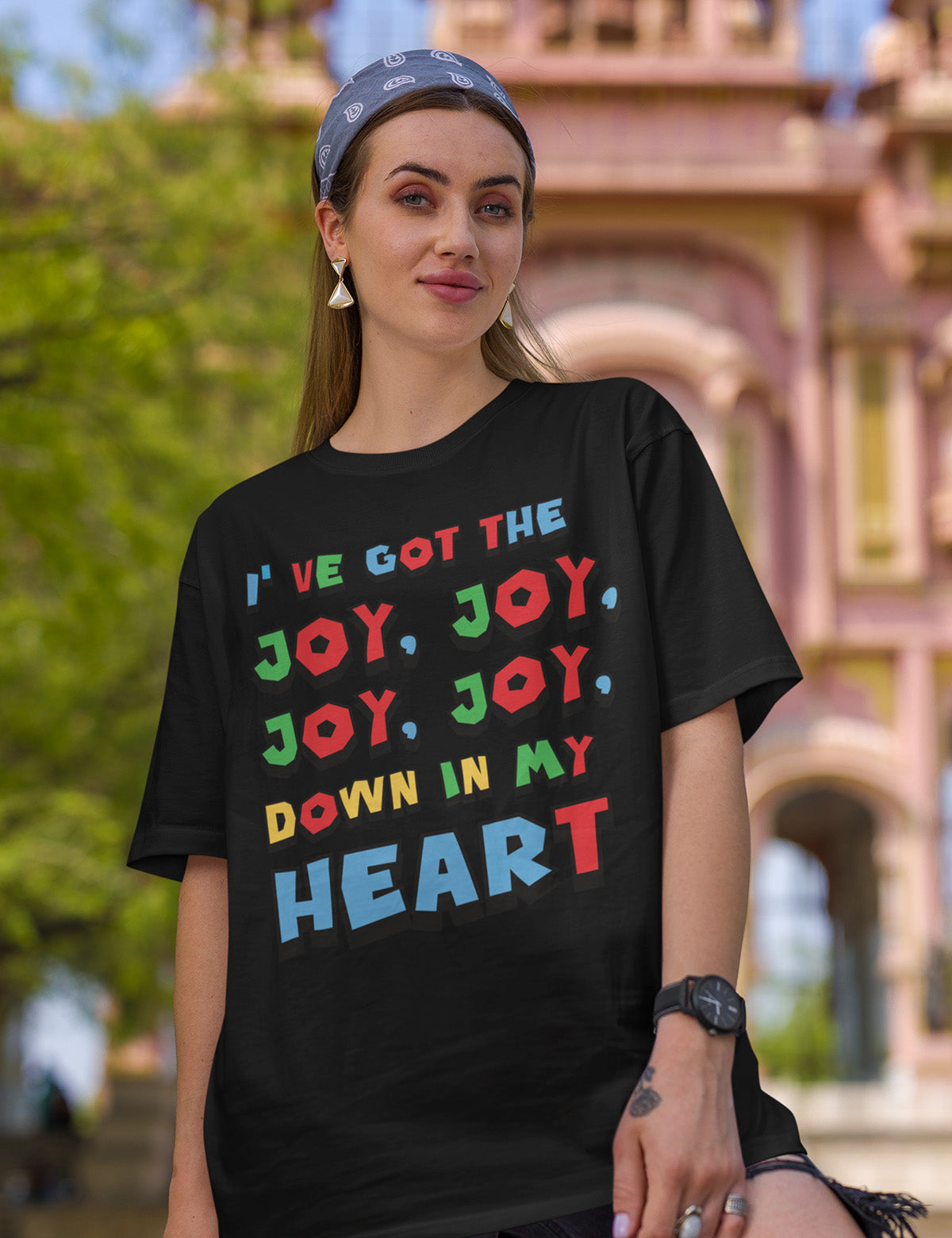 I’ve got that Joy Down in my Heart Shirt is the ultimate addition to any wardrobe. This t-shirt is crafted from the finest grade of cotton, delivering a soft, lightweight, and comfortable feel. Its classic design features a crew neckline, short sleeves, and an effortlessly regular fit.