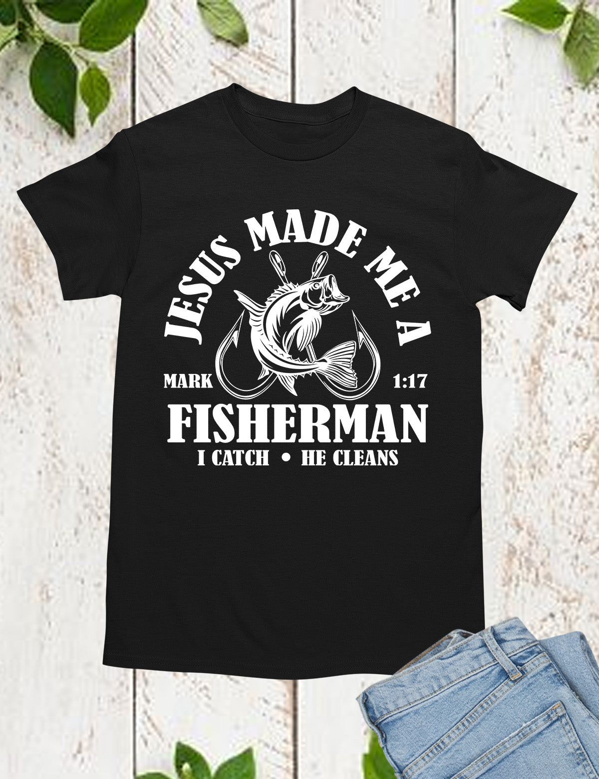 Are you in search of a fashionable and trendy t-shirt? Look no further! Explore our Jesus Made Me a Fisherman T Shirts. Crafted from 100% cotton, this shirt ensures a cool and comfortable experience throughout the day.