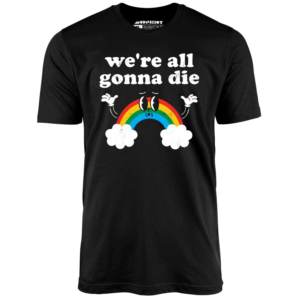 We're All Gonna Die - Unisex T-Shirt is the ultimate addition to any wardrobe. This t-shirt is crafted from the finest grade of cotton, delivering a soft, lightweight, and comfortable feel. Its classic design features a crew neckline, short sleeves, and an effortlessly regular fit.