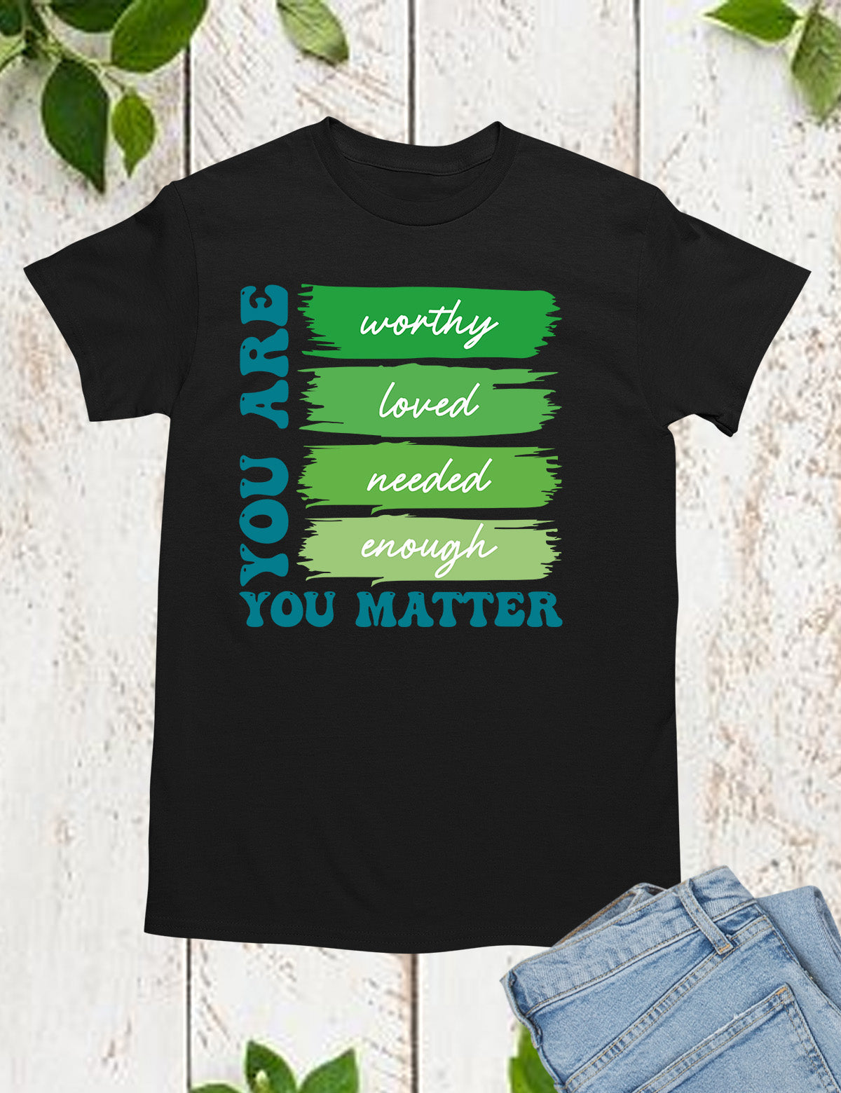 You are Worthy Loved You Matter Shirt is the ultimate addition to any wardrobe. This t-shirt is crafted from the finest grade of cotton, delivering a soft, lightweight, and comfortable feel. Its classic design features a crew neckline, short sleeves, and an effortlessly regular fit.